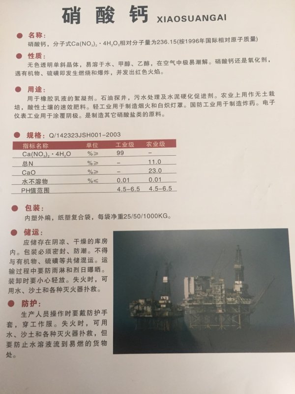 上一條:硝酸鈣